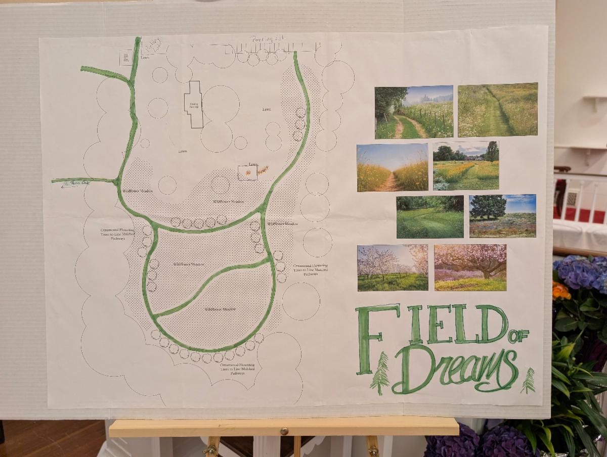 Last Sunday, as part of our Earth Day celebration, Green Team member Bernie Miller unveiled the Vestry-approved plan to turn half of our large field beyond the rectory into a New England meadow.