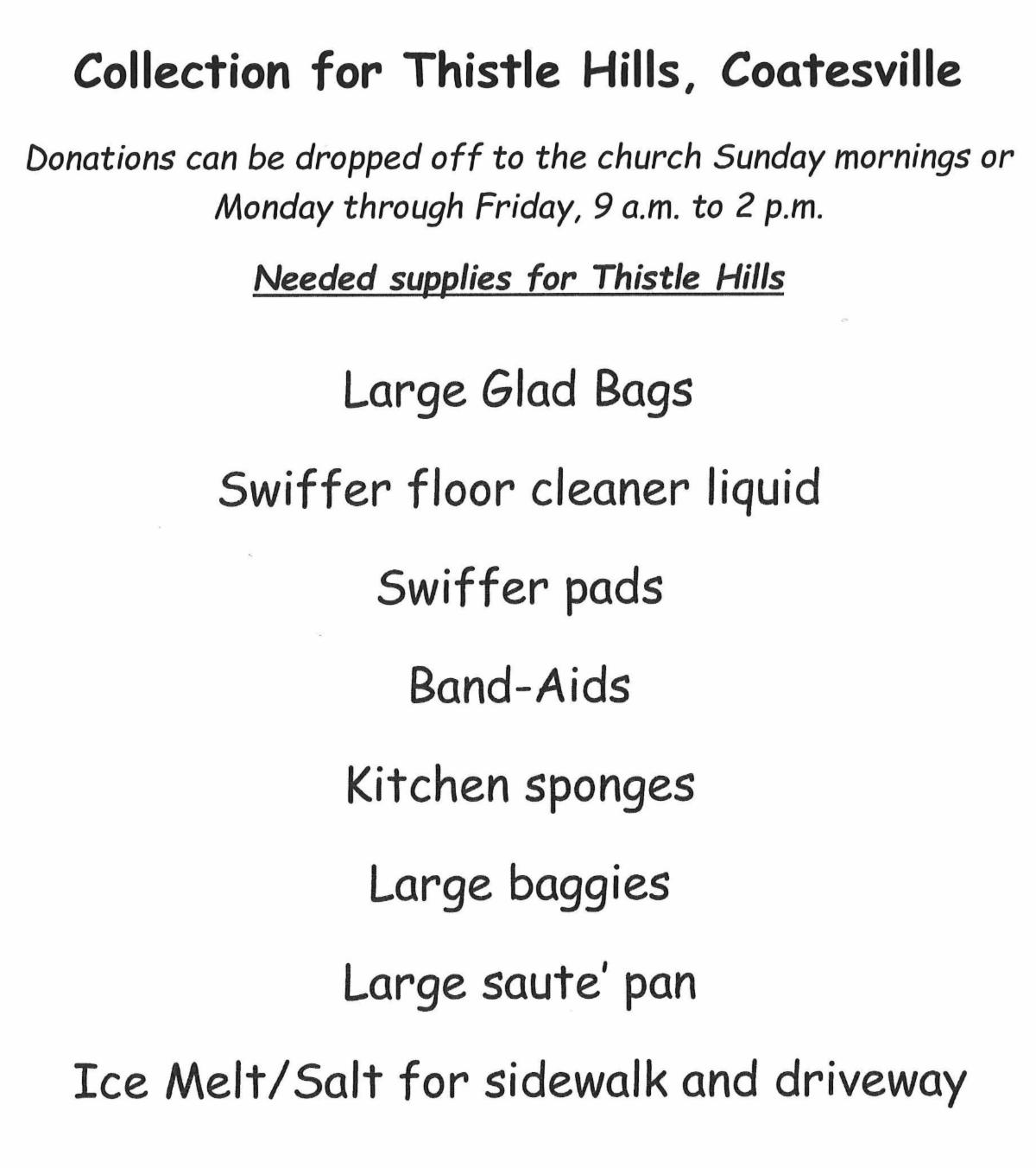 When shopping, take the list with you and throw something extra in the cart! Anything you can give would be greatly appreciated by the women who live at Thistle Hills House!