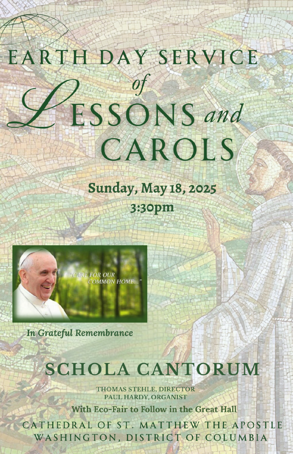 Join us for our annual Lessons & Carols for Earth Day, a beautiful afternoon of music and reflection featuring the Schola Cantorum. After the service, we invite you to the Eco-Fair in the Great Hall, where you can enjoy light refreshments and explore ways to make a positive impact on our planet. Come be inspired—and learn how you can help care for Mother Earth in meaningful, everyday ways. Sunday, May 18, at 3:30pm.