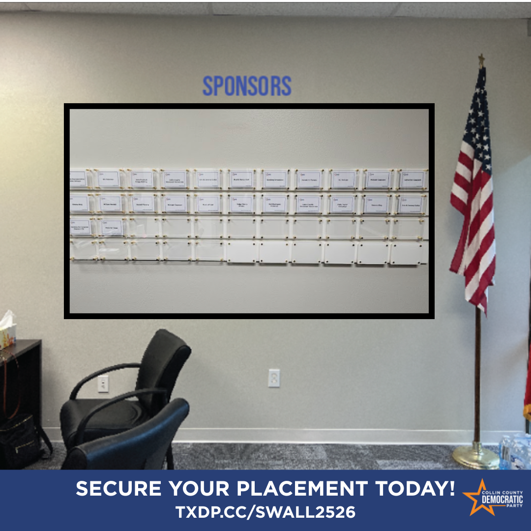 We're excited to announce the launch of our 2025–2026 Sponsor Wall! This is your opportunity to support the Collin County Democratic Party and be recognized for your commitment to our shared values.​