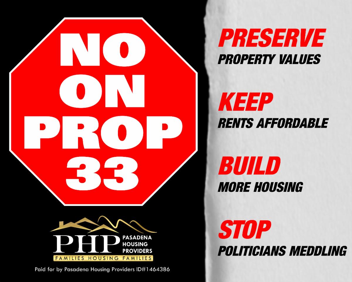 This week, we want to offer our most sincere thanks. To those of you who commented on the Rent Board’s unfair conduct on Thursday night, and to those who made the generous donations which have allowed us to start our advertising in Pasadena against Prop 33, we appreciate what you’ve done to help defend the rights of housing providers.