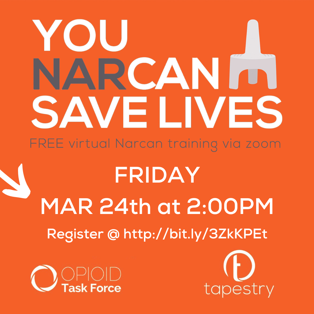 Mar 24: Tapestry and Opioid Task Force NARCAN Training on Zoom