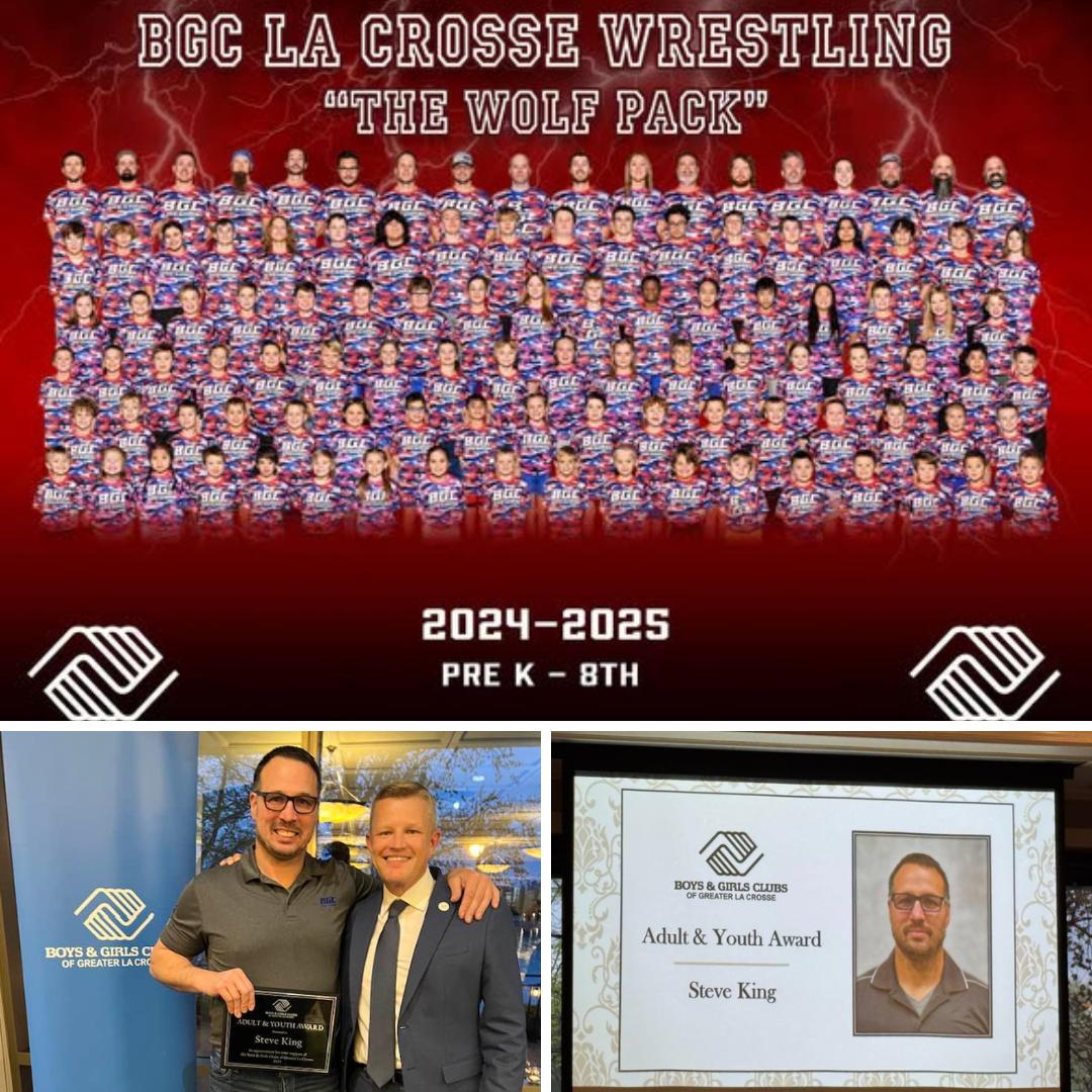 His dedication paid off. Today, BGC Wrestling boasts over 100 enrolled athletes—the largest in its history—thanks to the support of passionate parents and dedicated coaches. For over 25 years, King has shaped young athletes across the La Crosse area, including his own son Emerson, who now wrestles at Logan High School.