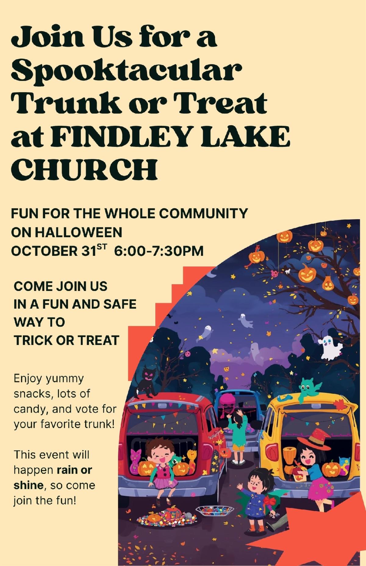 October 31 Trunk or Treat at Findley Lake Church 6:00-7:30PM