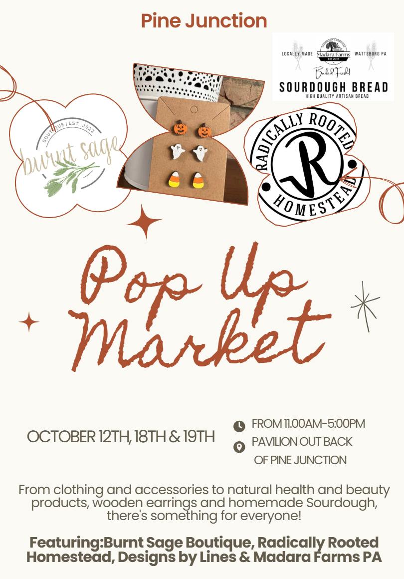 October 12, 18 and 19 Pine Junction Pop-up Shopping Event 11AM-5PM