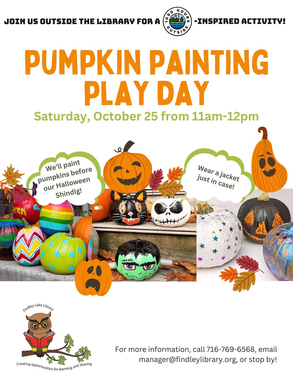 October 25 Findley Lake Library Pumpkin Painting 11AM-2PM; Spooky Halloween Shindig 12-1:30PM.
