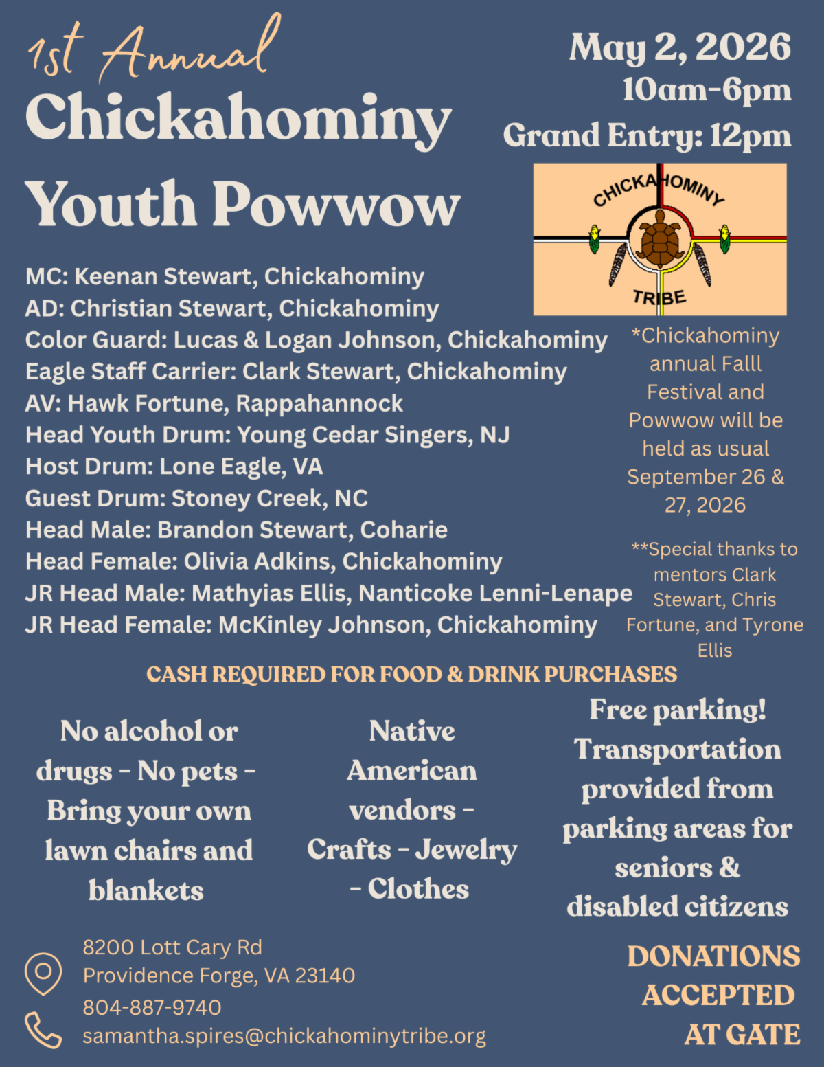 - Student must be an enrolled citizen of one of the 11 Virginia-recognized tribes or a federally recognized tribe (documentation required).