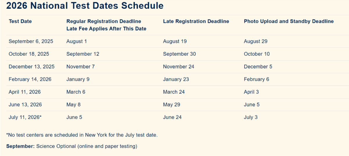 | | Let NYCP Assist you with your ACT Test Registration | | 2025 National Test Dates Schedule | | | |