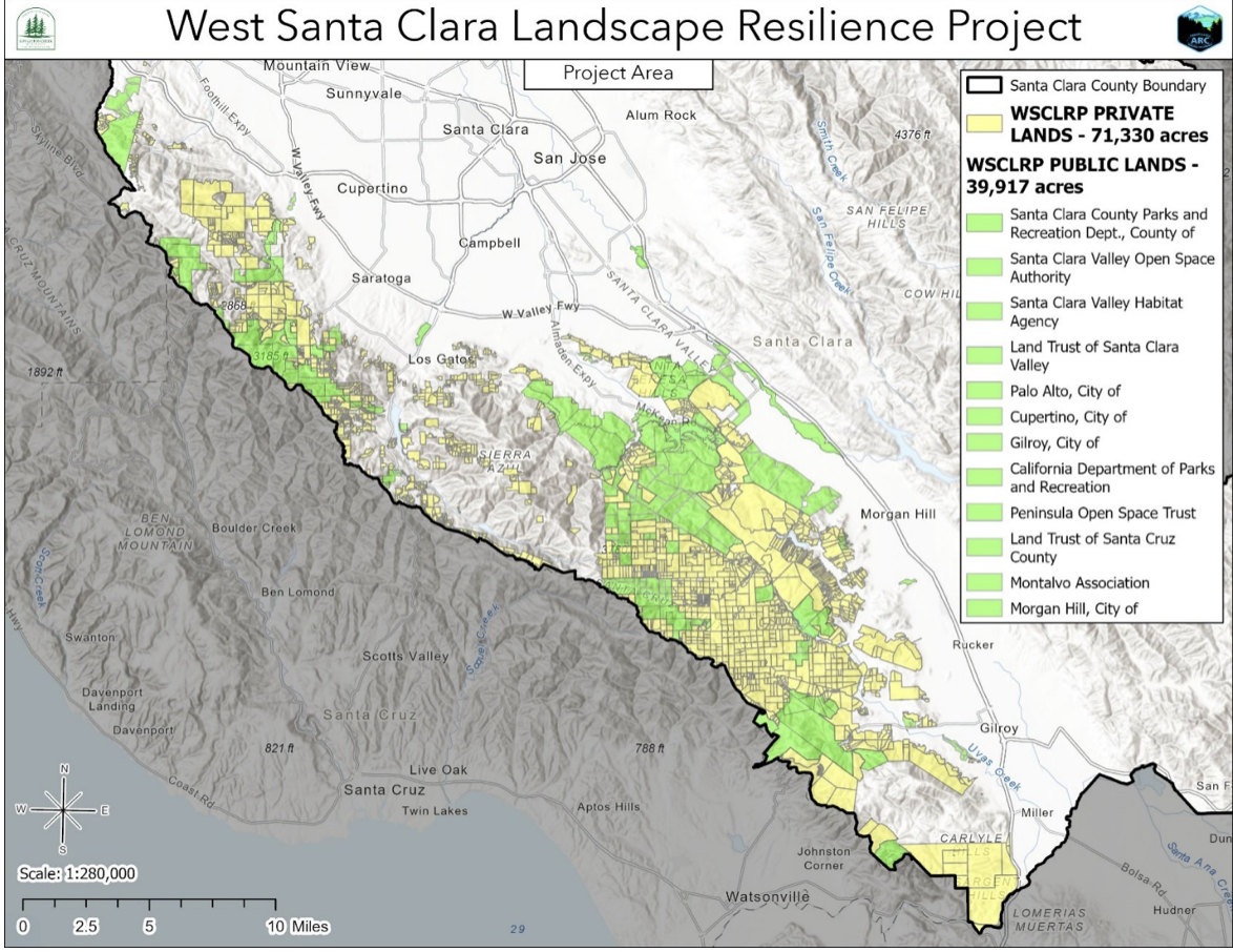 We have much news to share as we end 2024 on a high note. A milestone year for Santa Clara County FireSafe Council. We recently announced our West Santa Clara Landscape Resilience Project, a 110,000-acre multi-collaborator partnership with the Saratoga Fire District serving as the CEQA Lead Agency for this regional project. Having CEQA compliance at this landscape-scale will build off the work of the Los Gatos Creek Watershed Collaborative and the Santa Clara County Community Wildfire Protection Plan, to bring many more projects to a “shovel-ready” stage and help advance the region’s wildfire resiliency. The West Santa Clara County Landscape Resilience Project will build a legacy of public/private partnerships that plan and implement effective treatments across jurisdictions and for the benefit of many communities throughout Santa Clara County. See map below: