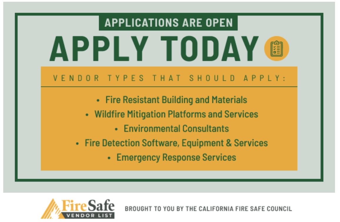 California Fire Safe Council’s Fire Safe Vendor List is a digital publication promoting businesses in the fields of fire safety, prevention, and/or mitigation.