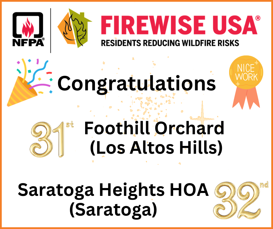 Huge congrats to Saratoga Heights HOA and Foothill Orchard—Santa Clara County’s newest Firewise Communities!👏🏡 Santa Clara County now proudly has 32 Firewise USA® communities working together to reduce wildfire risk.