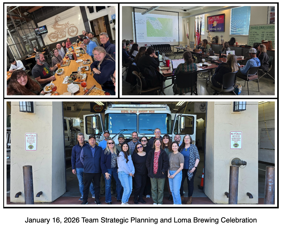| We continued our N5 Sensor training with the county, working with several departments preparing for eventual integration within the CAD system, and working on alerting protocols and workflow processes. A big thank you to the county team, especially Shawn Whiteman who leads the county project and Deputy Fire Chief Brian Glass who leads the Santa Clara County Fire Department engagement. Appreciate your leadership. | On January 16th, we held our Q1 team strategic planning session going over projects, new and planned technology partnerships, processes and procedures we can improve and lessons learned in 2025 we will apply to 2026. Teaser: Stay tuned for more exciting AI based wildfire risk mitigation reseller and consulting partnerships announced in February and March. Then it was off to the Loma Brewing Company in Los Gatos to celebrate our 2025 success and where the real brainstorming occurred! | On January 30th, University of San Francisco Law held their 2026 Law Review Symposium: Stages of Fire: Stages of Fire: Mitigation, Adaptation, and Rebuilding. In California and elsewhere across the country, fire is not an option; it is part of who we are, who we were, and who we will continue to be. By examining three stages of wildfire preparedness and response, including mitigation, homeowners’ insurance, and rebuilding, this symposium hopes to illuminate key perspectives and provide a forum for engaged discussion on the current legal landscape and proposals for its future. I encourage you to watch the full symposium video. | Now, let the SCCFSC team take it from here. Thanks for reading. | | | |