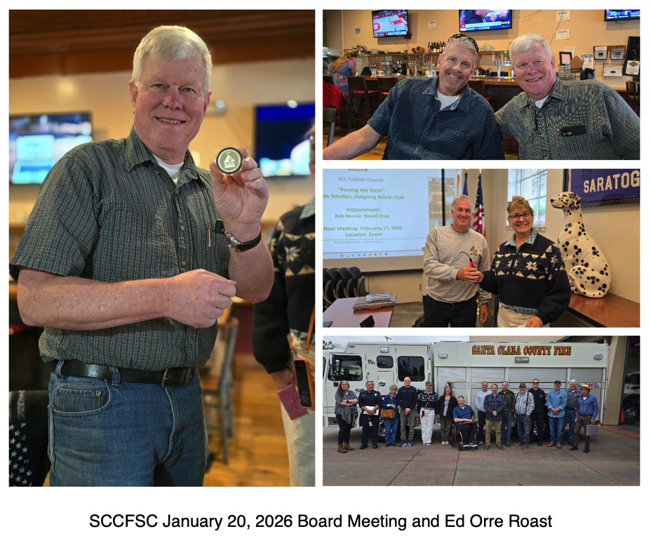 What made it even more special was that we honored Chief Ed Orre, who retired in December, after 25 years with CAL FIRE, and our lead partner in the SCU Unit. We presented him with a SCCFSC Challenge Coin, then toasted and roasted him down the street at the Burger Bar.
