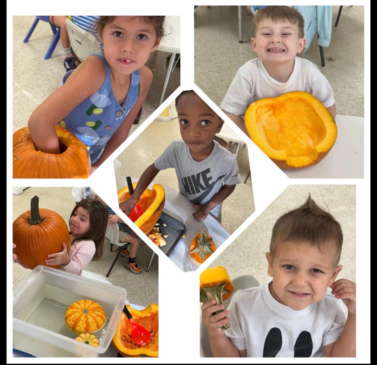 In Ms. Angela and Ms. Audrey’s VPK class, the children had their Early Learning Coalition observation, and it went very well! The theme for the week was pumpkins. The children enjoyed their pumpkin investigation, learning the parts of a pumpkin and exploring the insides. For their final experiment, they tested whether different-sized pumpkins would sink or float—they discovered they all floated! It was a fantastic week of hands-on learning.