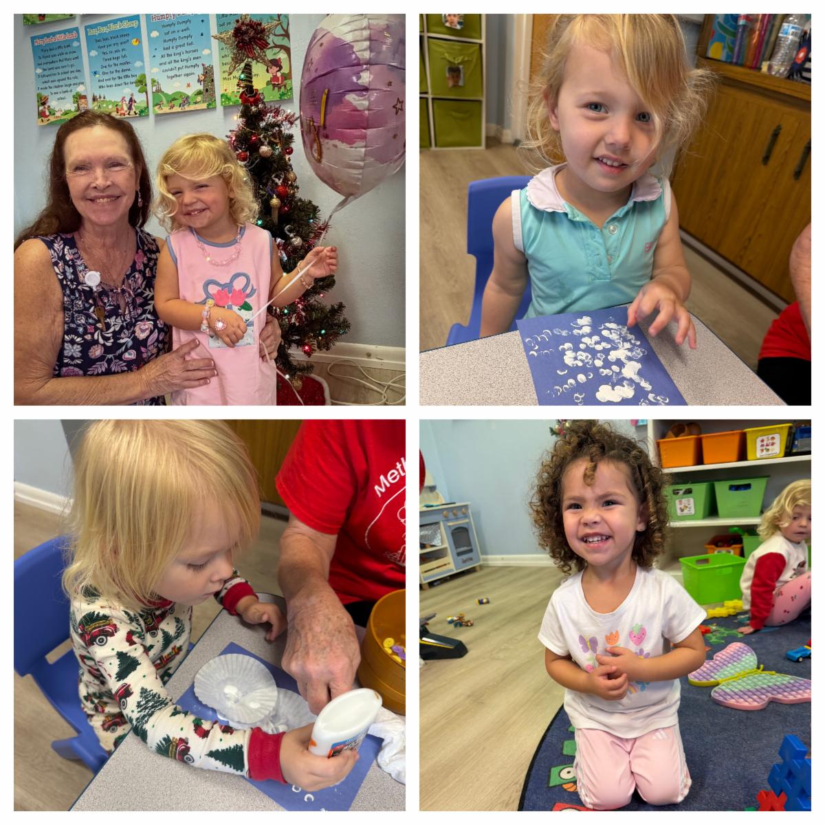The children had a fun trip to the preschool library where they explored new books and listened to festive read-aloud books. They worked on creating their very own Christmas houses and were so proud of their creations. They made beautiful wreath ornaments while working on their fine motor skills. Throughout the week the children participated in a variety of fine motor activities and enjoyed several fun Christmas stories. It was a joyful week filled with learning, laughter, and holiday spirit in the Toddler class!
