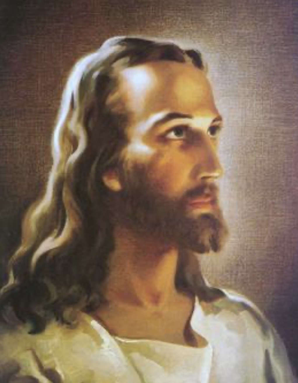 And so these last several weeks I have been pondering the abundance of representations of Jesus to which we have been exposed over the millennia. I would guess there are very few of you of a certain age for whom this is not the image of Jesus you have carried with you in your brain since you were a child like me who grew up seeing this painting on the wall of every basement Sunday school class she ever was in.