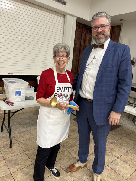 Pat Gillis garnered some accolades for First Pres at the Empty Bowls Potter's Throwdown and Souper Bowl on January 9th. She won the Golden Ladle for her delicious butternut squash soup with honey crisp apples—garnished with sour cream, crushed pistachios, pomegranate seeds, and hand ground nutmeg.