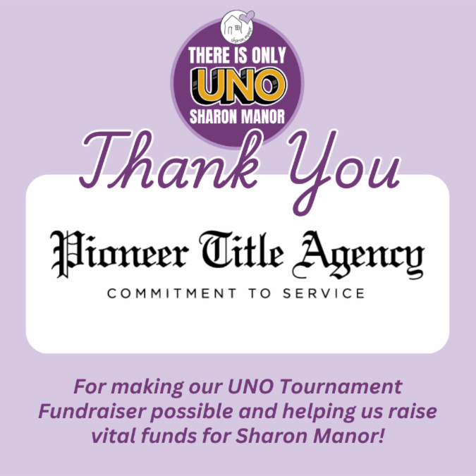 Thank you, Pioneer Title Agency, for making our recent UNO Tournament Fundraiser possible and helping us raise vital funds for Sharon Manor! Your partnership supports transitional housing and trauma-informed services for local survivors experiencing homelessness.