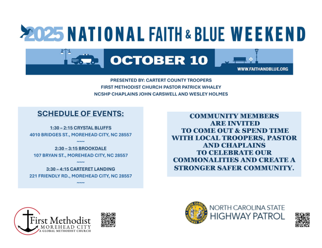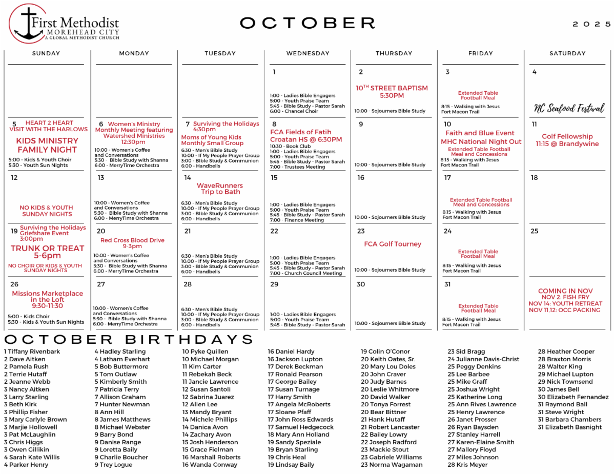 On Thursday, October 10th, from 6–8pm, our Extended Table Ministry will be serving hotdogs at National Night Out in Morehead City. This is a wonderful opportunity to share food, fellowship, and Christ’s love with our community. Come join us and be part of this special evening!