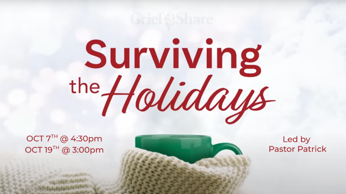 The holidays can be tough after the loss of a loved one. Join Pastor Patrick for GriefShare: Surviving the Holidays, a 2-hour seminar with video insights, a Holiday Survival Guide, and support from others who understand.
