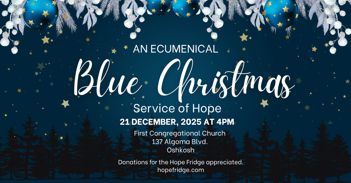 Join us as we participate with First Congregational and Trinity Episcopal Churches in this year's Blue Christmas Service. Pastor Deb, in fact, will be leading several portions of the service.