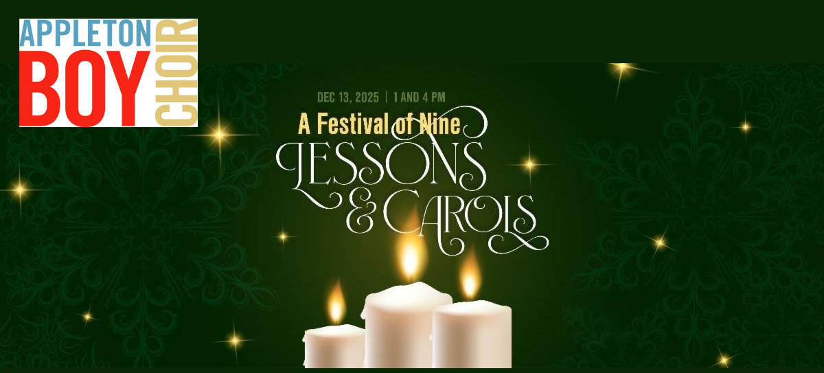 Christmas comes again with the angelic voices of the Appleton Boychoir as they present "A Festival of Nine Lessons and Carols". One hundred men and boys are joined by Copper Street Brass, instrumentalists of all kinds, and organist Devin Atteln. From one lone voice to soaring descants and hymns rich with seasonal joy…the imposing beauty of the Lawrence Memorial Chapel will ring with the sounds of Christmas!