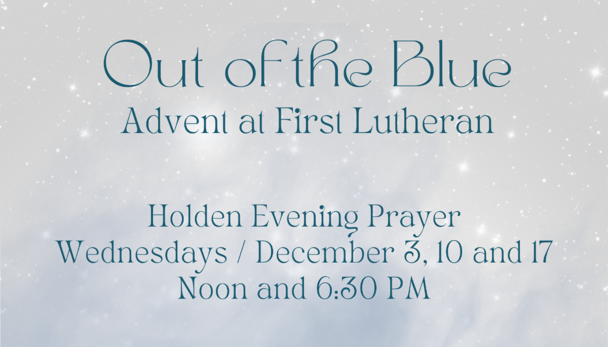 | | A weekly newsletter from First Lutheran Church, created to inspire and connect you with meaningful ministries and opportunities to live out your faith - within our church, our community, the world and your everyday life. | | Highlights for the Week of November 26, 2025 | | Out of the Blue: Embrace the Unexpected this Advent Season | |