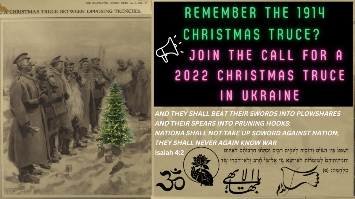 As people of faith and conscience, believing in the sanctity of all life on this planet, we call for a Christmas Truce in Ukraine. In the spirit of the truce that occurred in 1914 during the First World War, we urge our government to take a leadership role in bringing the war in Ukraine to an end through supporting calls for a ceasefire and negotiated settlement, before the conflict results in a nuclear war that could devastate the world’s ecosystems and annihilate all of God’s creation.