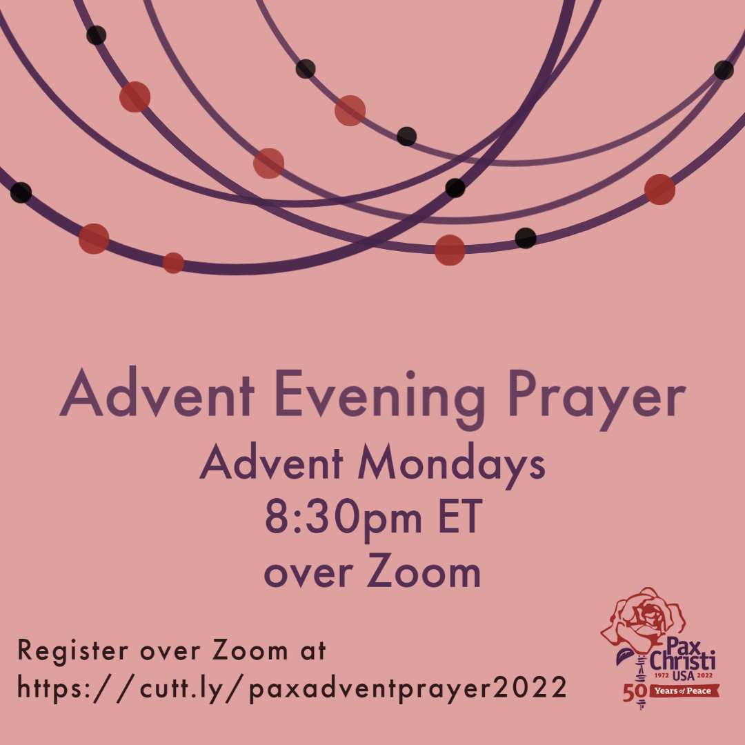 >> Join us each Monday evening in Advent over Zoom from 8:30-9pm for an Advent evening prayer service with Pax Christi USA members from around the nation. Click here to register.