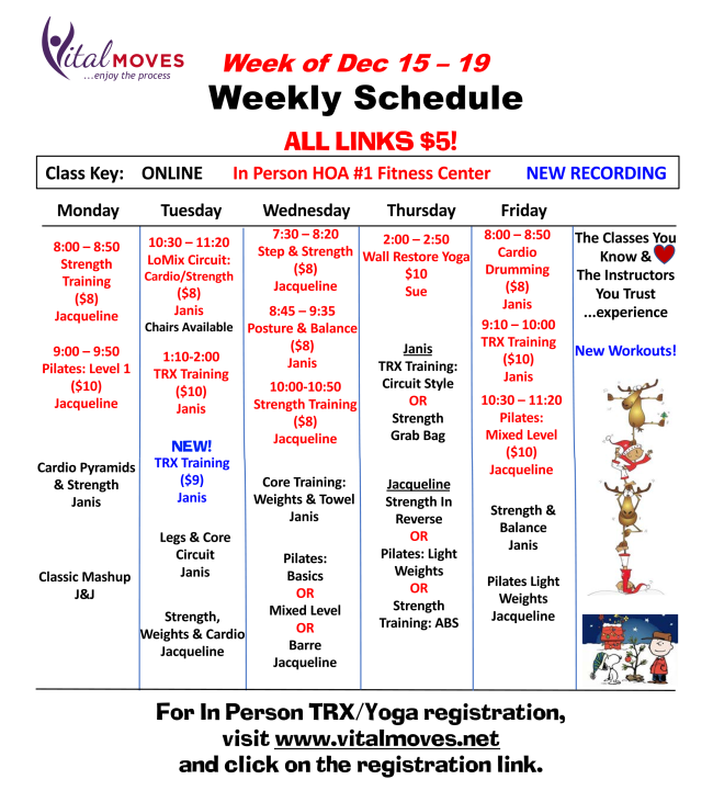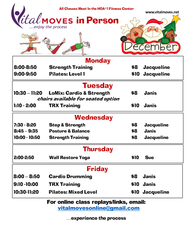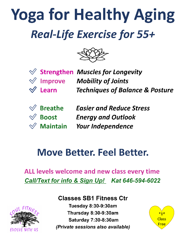 Through the holidays, Soul Fitness Yoga for Healthy Aging will have a few cancellations.