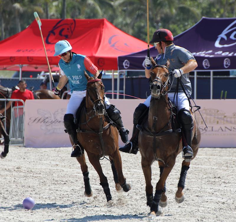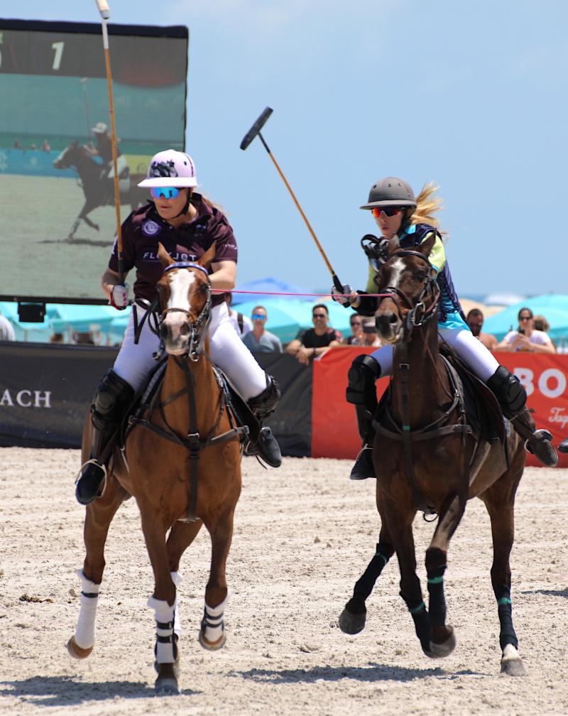 MIAMI BEACH, Fl., April 28, 2019---On a hot, sunny day, Flexjet and U.S. Polo Assn. battled their way into Sunday's championship final of the World Polo League Beach Polo Miami Beach Cup at Collins Park.