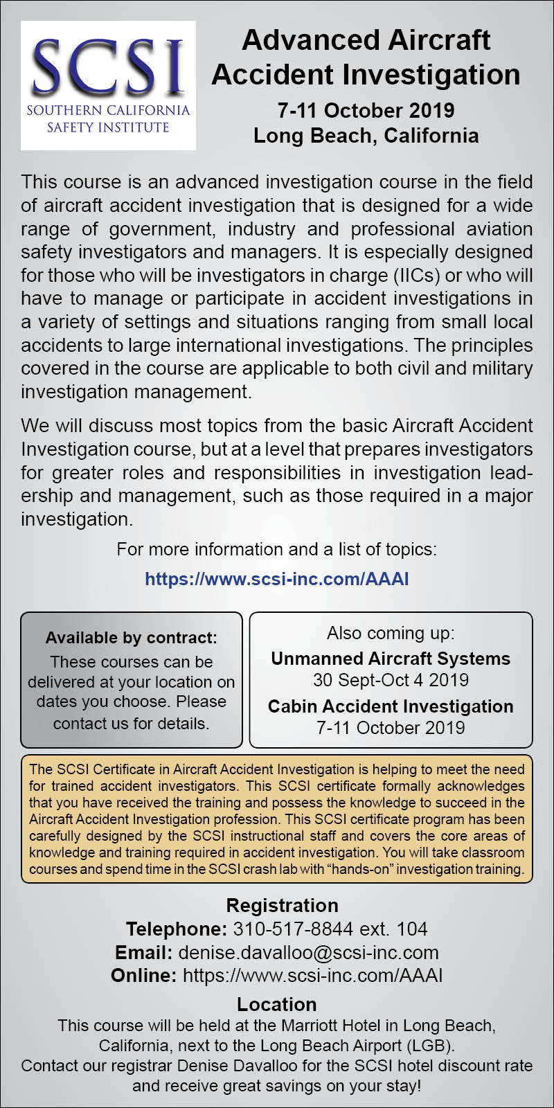 | ADVERTISE WITH FLIGHT SAFETY INFORMATION & AVIATION MAINTENANCE AND TECHNOLOGY EXCHANGE  Flight Safety Information (FSI) Newsletter has been publishing timely aviation safety news for over 25 years. FSI has over 100,000 aviation readers on a globally basis. Banner Ads and Push-Ads are Available. For advertising information and reasonable rates, please contact: Advertising@curt-lewis.com or Call: (817)845-3983 Back to Top |