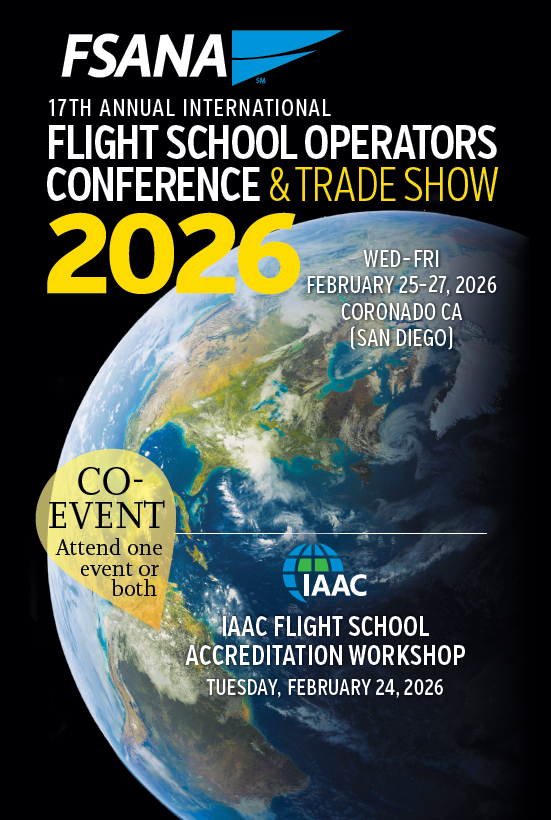 The FSANA 17th Annual Flight School Operators Conference & Trade Show will be in San Diego at the Loews Hotel in Coronado Bay, February 25-27, 2026.