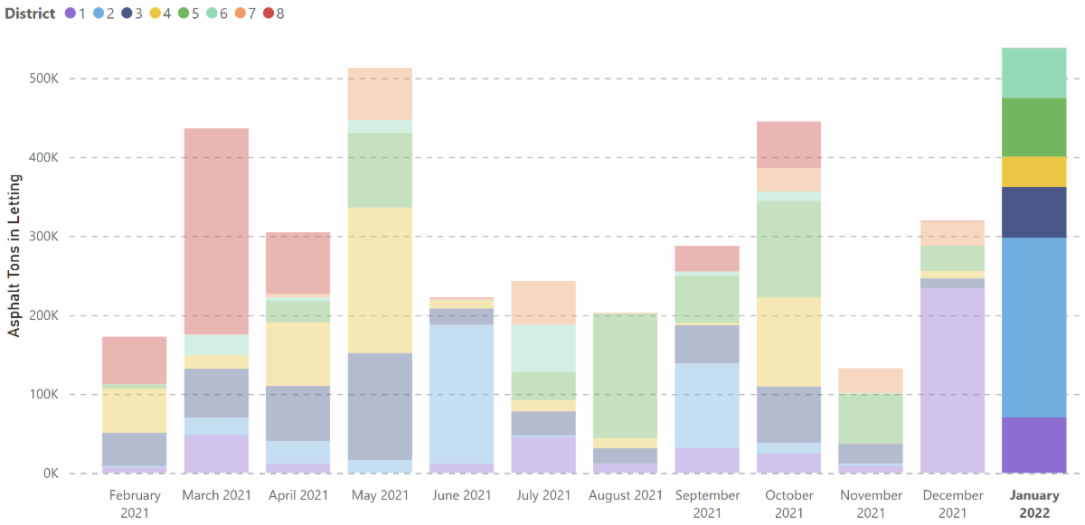 The FDOT will let 538,000 tons of asphalt in January. A project-level breakdown is here.