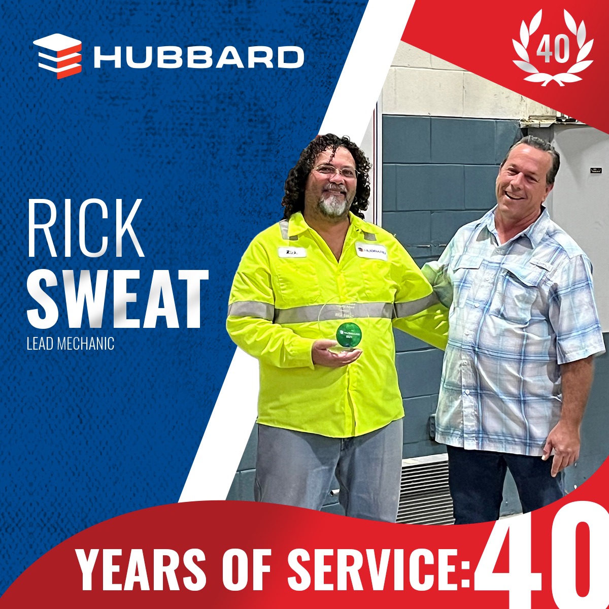 Hubbard recently presented Lead Mechanic Rick Sweat with a service award for 40 years of hard work. Congrats, Rick!