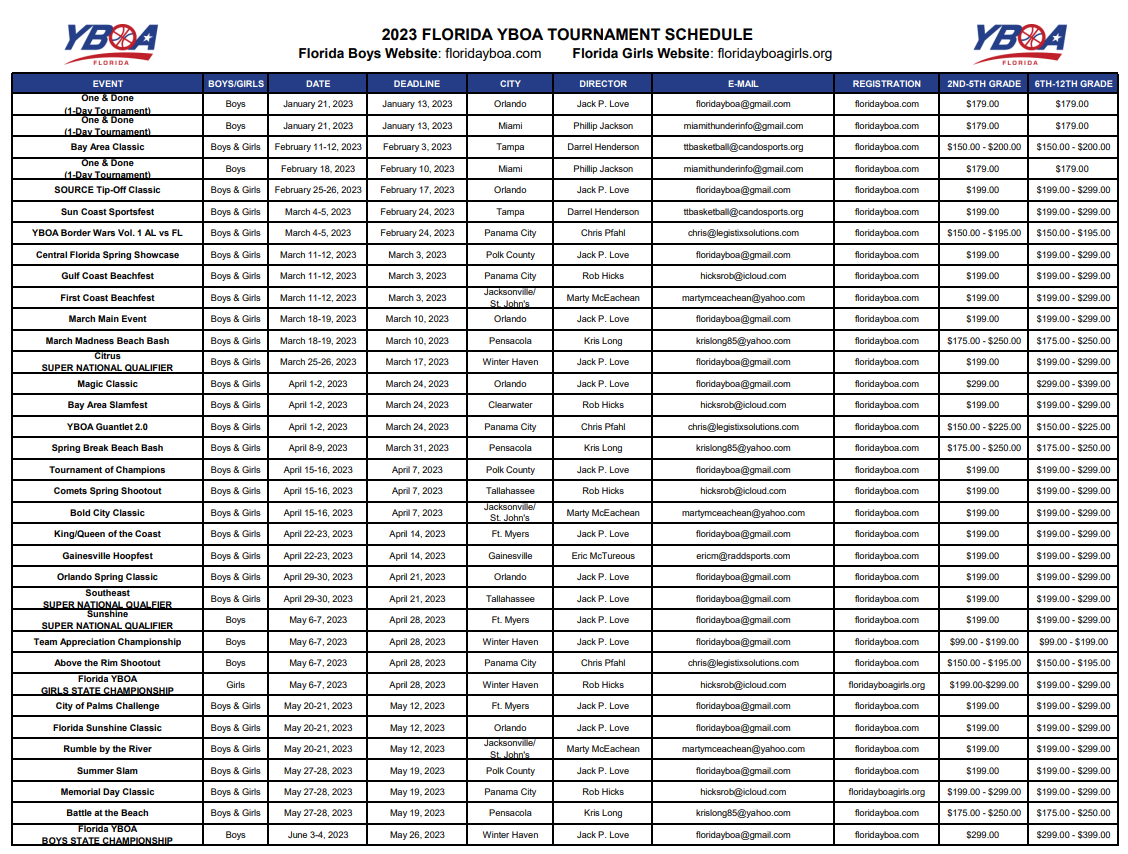 Additionally, Florida YBOA will provide all NCAA women's basketball college coaches (all division levels) each participating team’s Florida YBOA roster including contact information, as an added measure of college exposure.