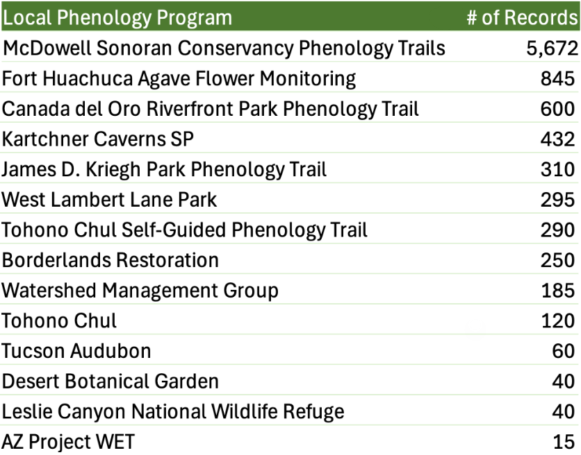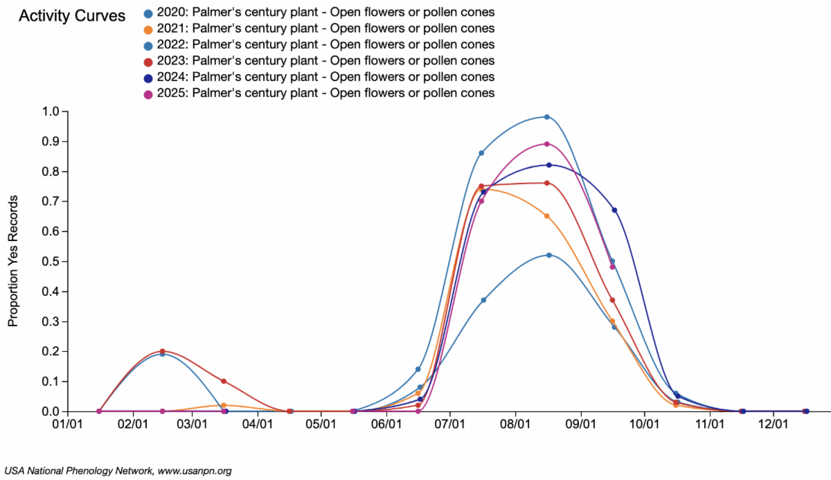 We hope that you will join us again next year. Your observations made at the same sites over multiple years are especially valuable in helping us to understand the variation in flowering in cacti and agave.
