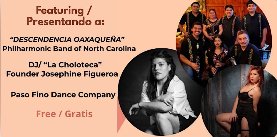 It will feature performances and dance workshops by: "Descendencia Oaxaqueña" Philharmonic Band of North Carolina; DJ / "La Coloteca" Founder Josephine Figuroa; and Paso Fino Dance Company.
