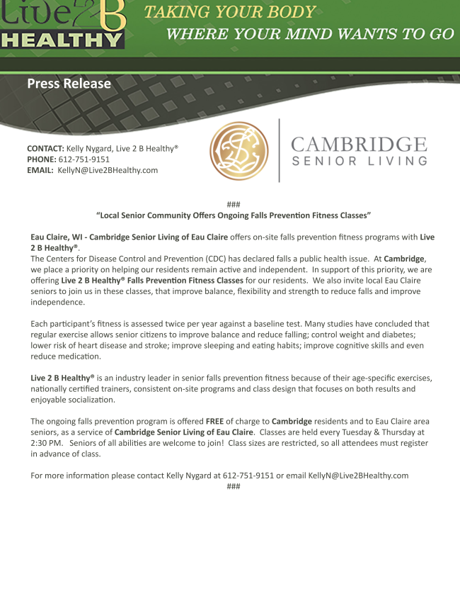 We tend to think of a Falls Prevention class as a one-time thing where we have someone come out to our building and talk about removing area rugs, replacing light-bulbs and installing grab bars. While these things are important, we will not experience long-term falls reduction results from a one-time informational session.