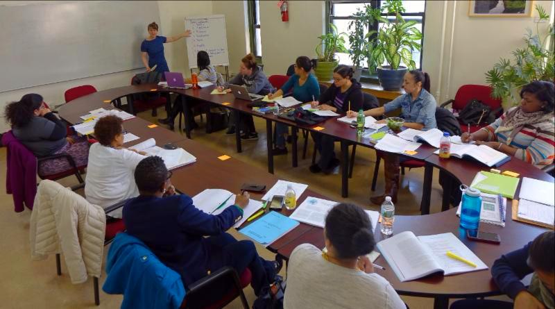 | The current cohort during class at the Bank Street College of Education "Quality for All" teacher education program. This program takes place onsite at BronxWorks and allows aspiring early childhood educators to get their masters degree while working full time. The program is open to individuals working at early childhood education facilities in Bronx non-profits. |