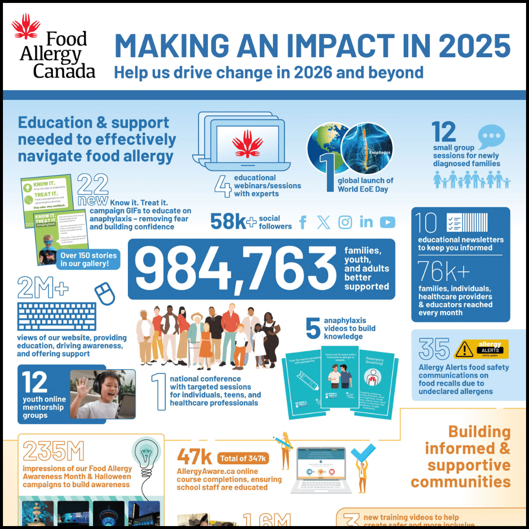 Start the new year by becoming a monthly donor. Your ongoing support helps advance advocacy, education, and programs that improve daily life for Canadians living with food allergy.
