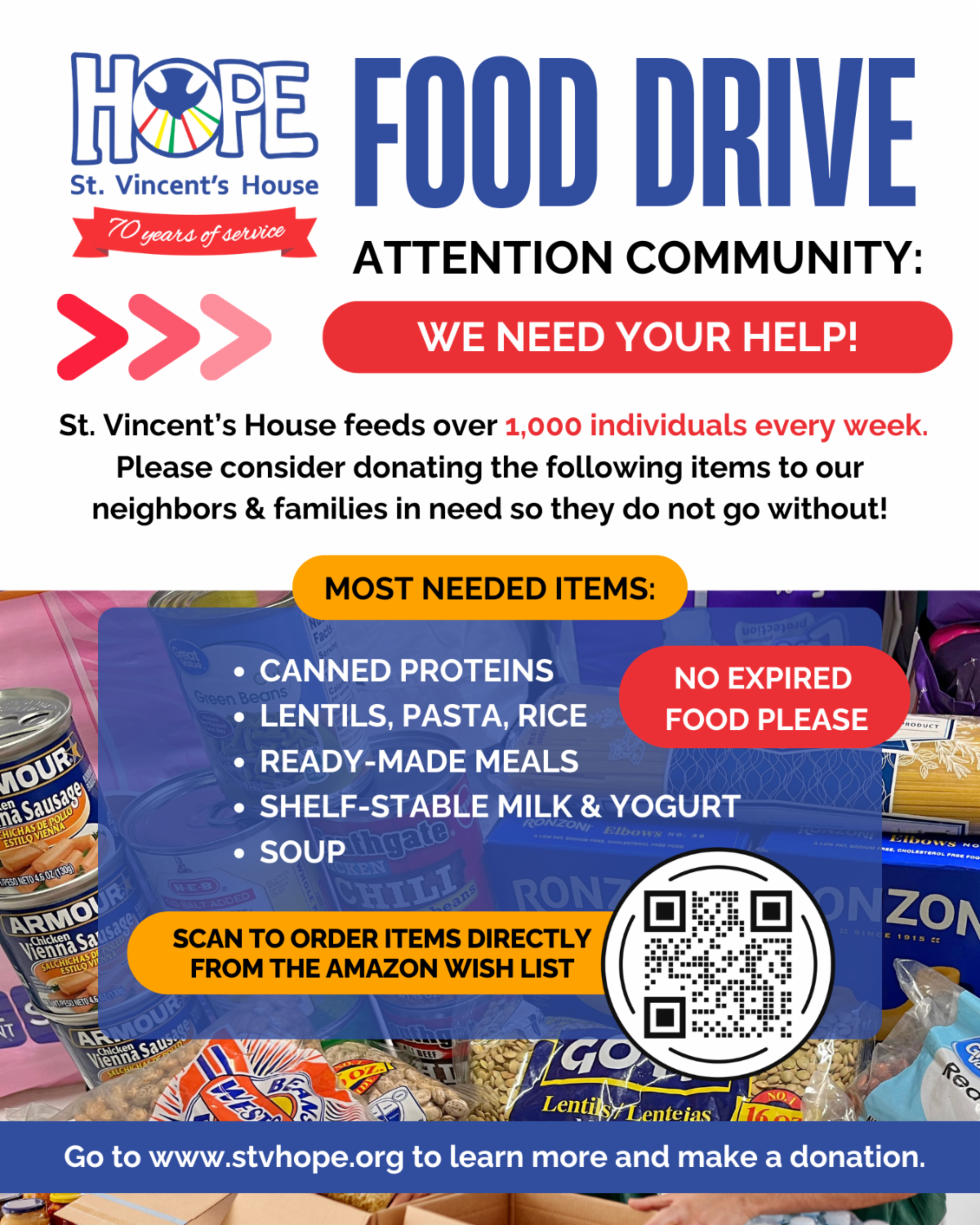 | | Donate non-perishable food items for St. Vincent's House | | | | | |