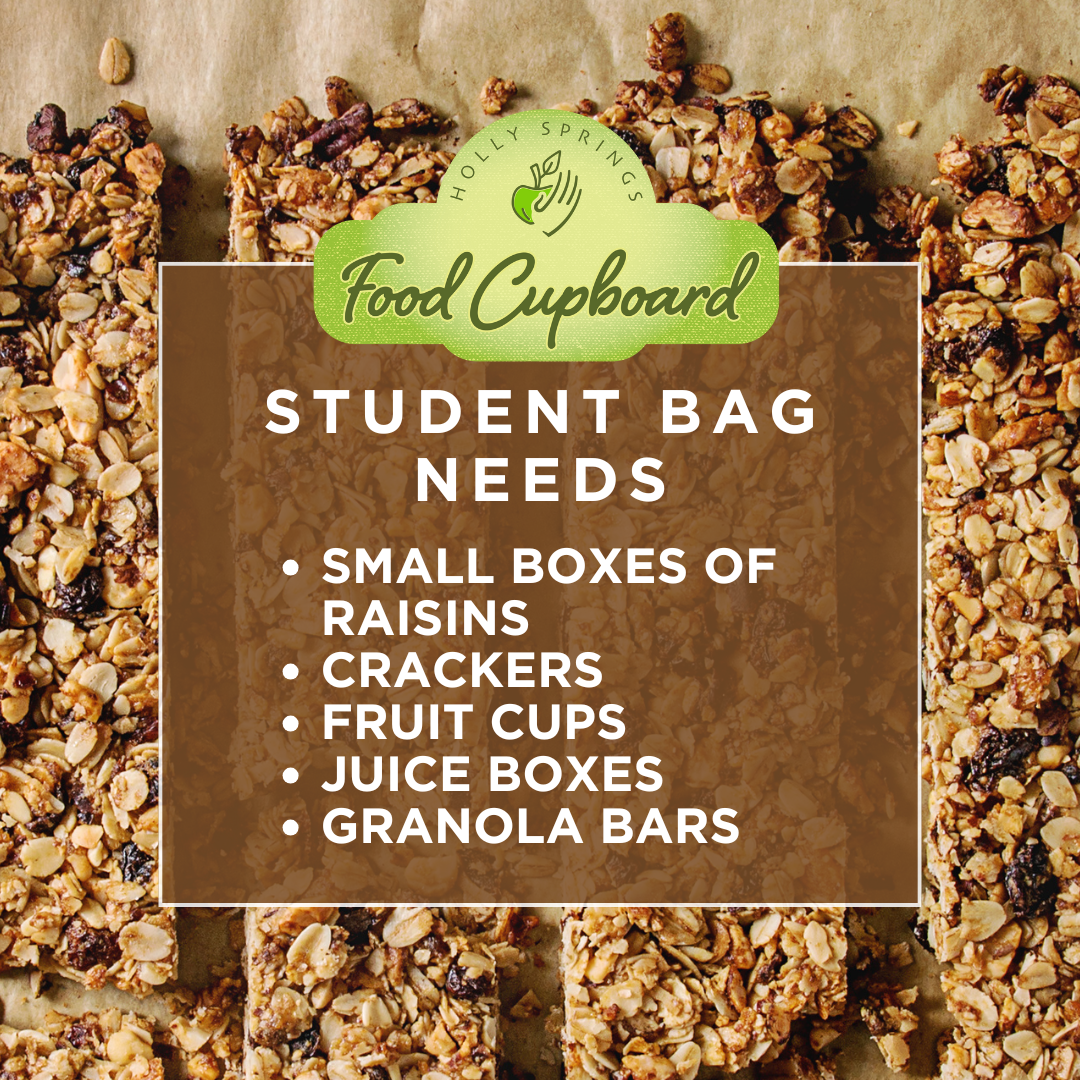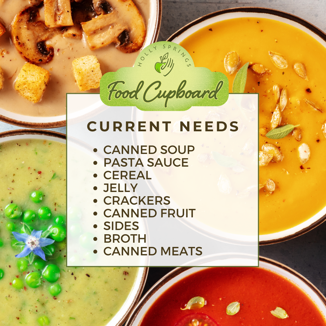 Celebrate with us this month! Consider donating 15 non-perishable food items to the Holly Springs Food Cupboard. Visit our website to view most-needed food items and community drop-off locations.