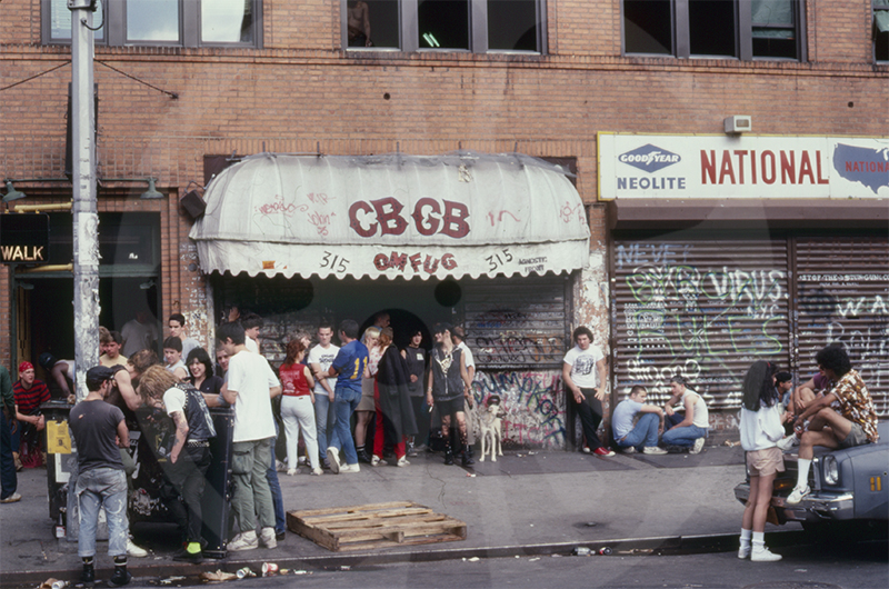 A crowd of people outside CBGB in Manhattan in the early 1980's. Photo by Robin Graubard