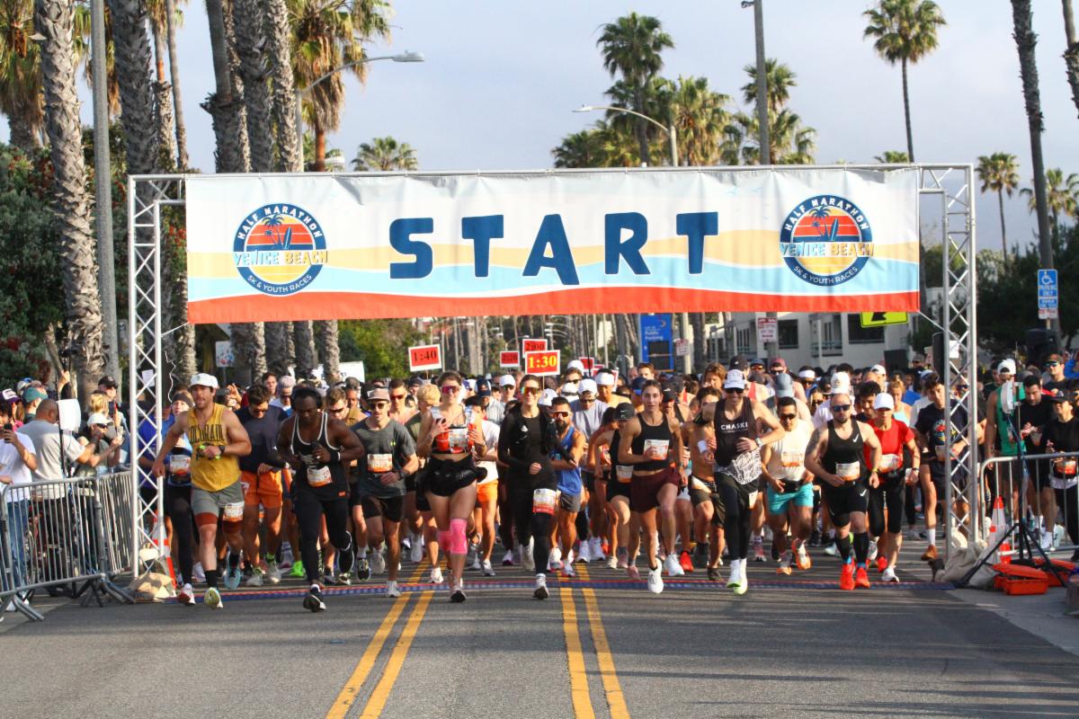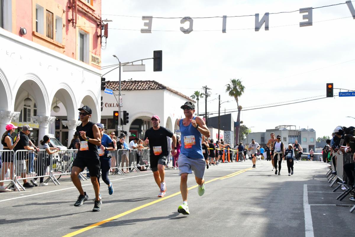 The scenic course winds through Venice’s most recognizable streets and landmarks, including Ocean Front Walk, Venice Boulevard, and Abbot Kinney Boulevard, passing historic locations such as Muscle Beach and the Venice Canals, before finishing beneath the iconic Venice Sign on Windward Avenue.