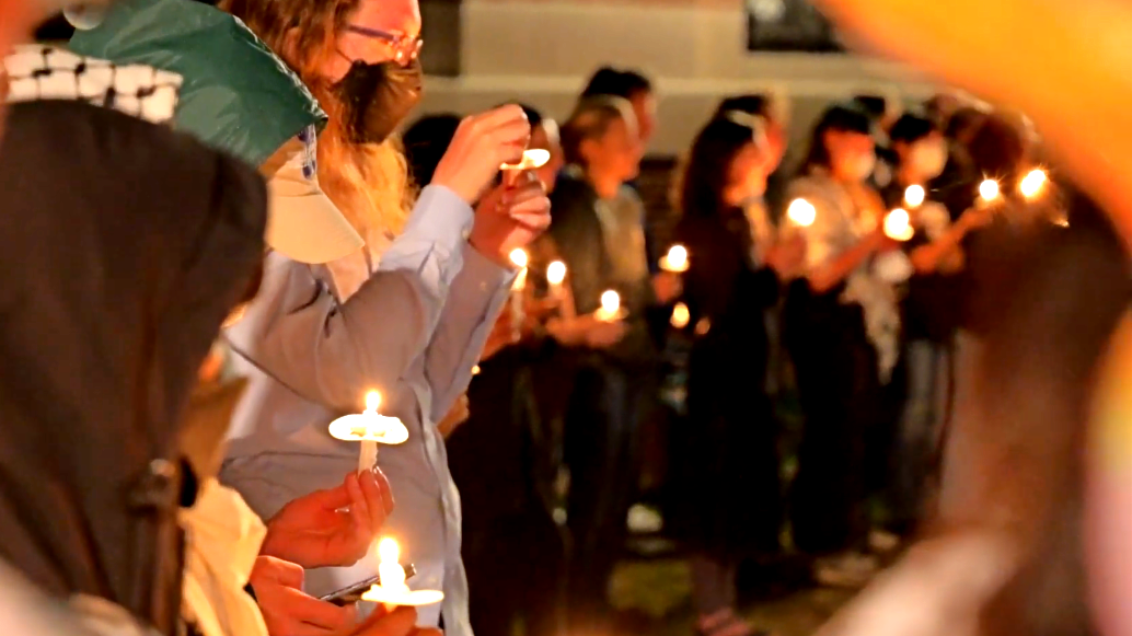 A year after the 2024 May Day rally, 70 people held a candlelight vigil for Palestine at Dartmouth College. Organizers pressured the college to divest from companies that aid in the Israeli occupation and to keep ICE off campus. 5/1/25 produced by Rick Russell for JAM.