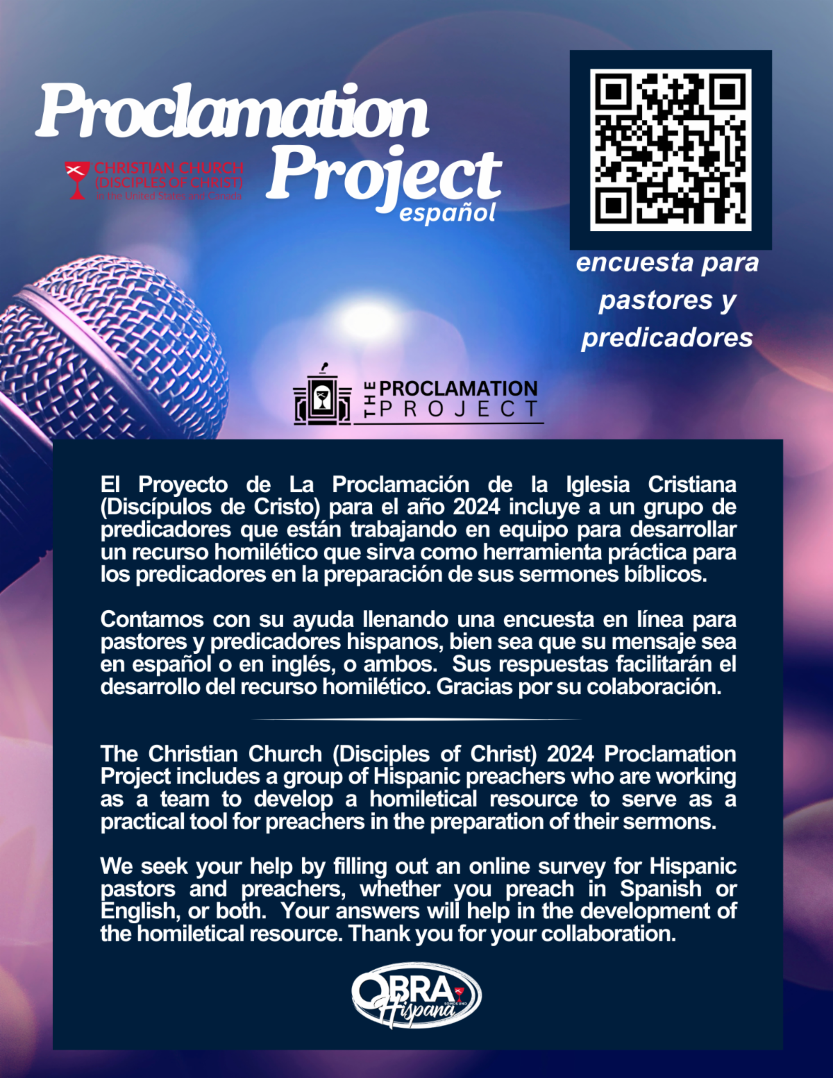 We seek your help by filling out an online survey for Hispanic pastors and preachers, whether you preach in Spanish or English, or both.