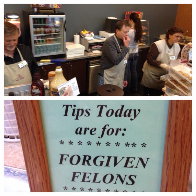 If you go to Trinity Church stop by the Porch Cafe and purchase something. And then tip really big. All the tips this month go to Forgiven Felons. Thank you Sam and the crew for working hard each week. They really have some great snacks there.