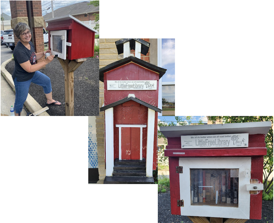 Beta Rho chapter members purchased used books for 50 cents each from the Pickaway County Friends of the Library to supply four Little Free Library boxes they created. This money bought hundreds of books to give away and helped the library buy books for its permanent collection. Below is what Marcia Smith, the Beta Rho literacy project coordinator, writes about Beta Rho’s Little Free Libraries project.