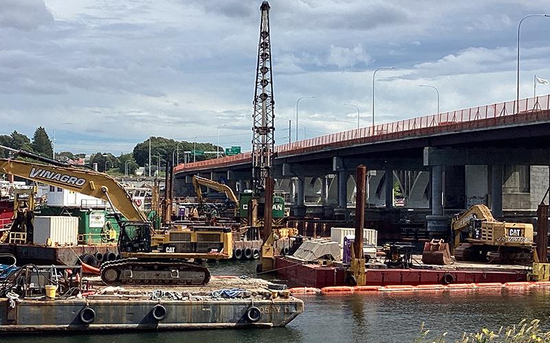 The approved in-water demolition work continues, Monday-Saturday from 6 a.m. to 6 p.m. No work is currently planned after 6 p.m. to avoid any disruptive noise during evening hours. In accordance with CRMC guidelines, debris will be removed from the river as work progresses, placed onto barges and towed to land for transfer into trucks for offsite disposal. Temporary protective sheeting and turbidity curtains are in place.